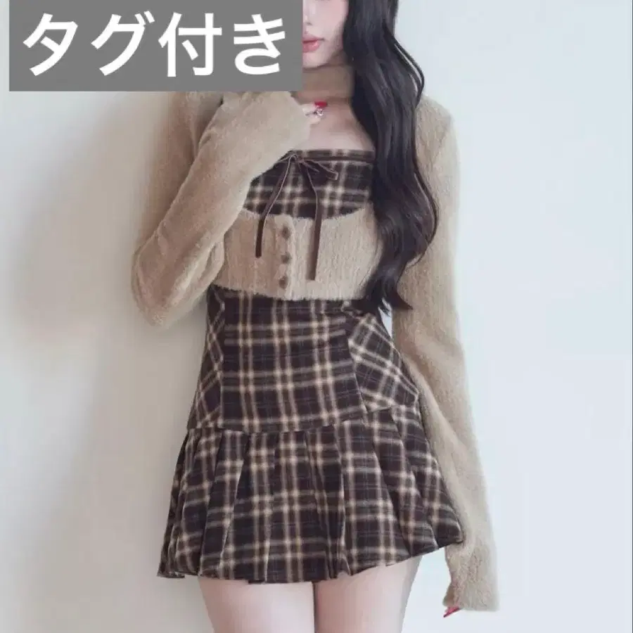bunnylis 퍼 볼레로 x 체크 미니 원피스 원피스 브라운