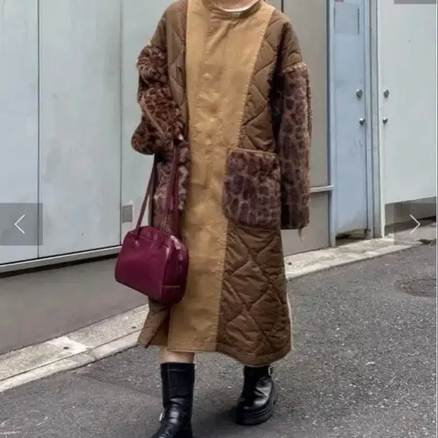 [ etsinta/에신타 ] 퍼 절개 노카라 퀼팅 코트