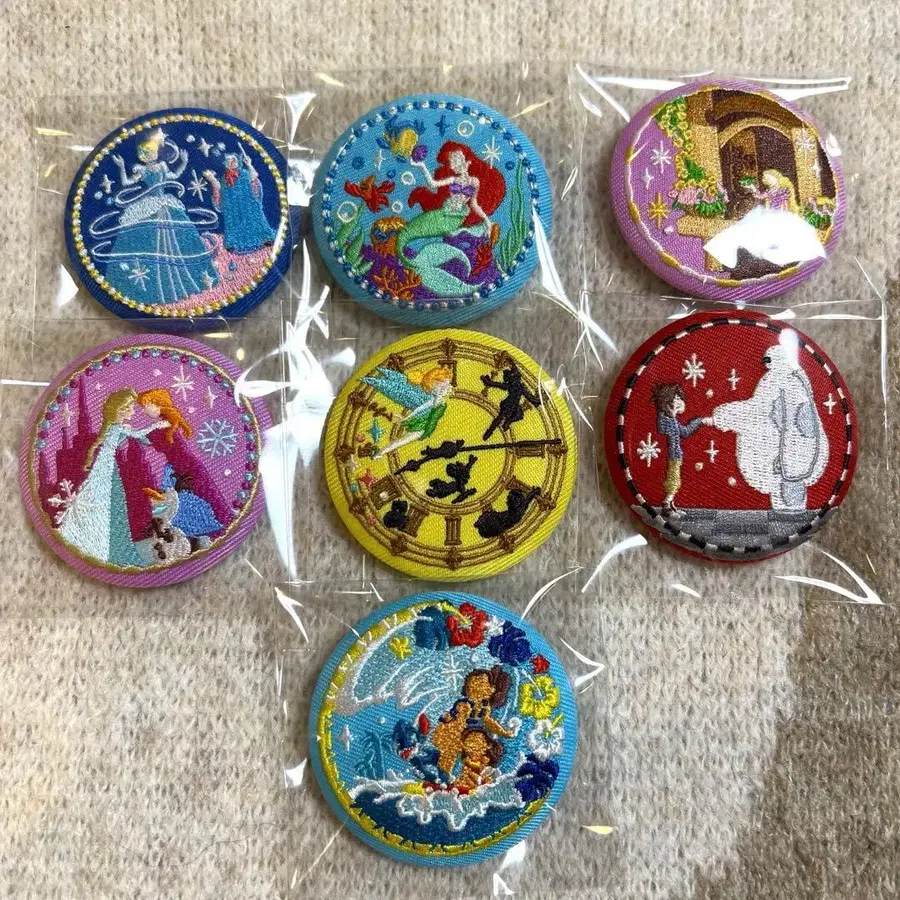 디즈니 자수 캔뱃지 7개 세트 신데렐라 아리엘 라푼젤 안나