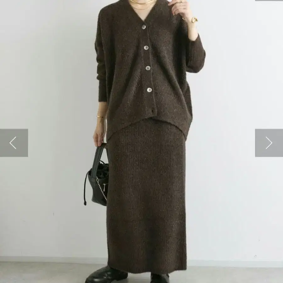 리브 드와 셋업 페더 라메 가디건 스커트 브라운