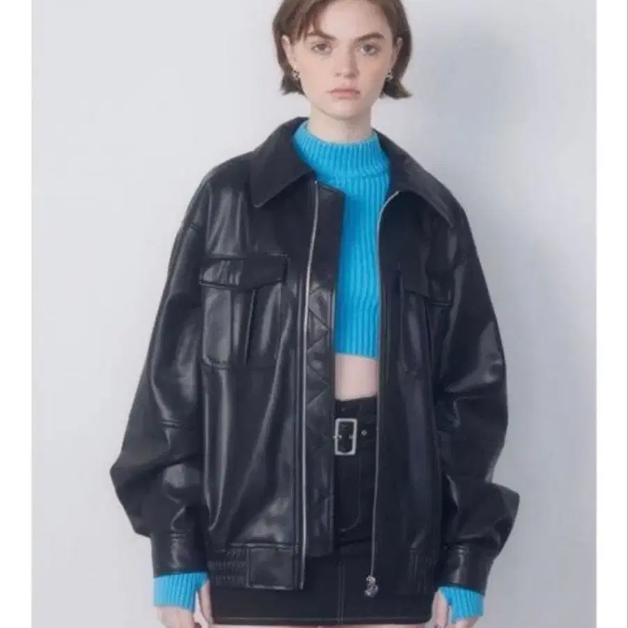EMODA 인조 가죽 오버 블루종 블랙 / FREE