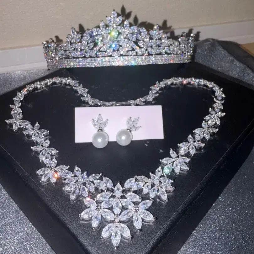 크리스탈 티아라 목걸이 귀찌 3종 세트