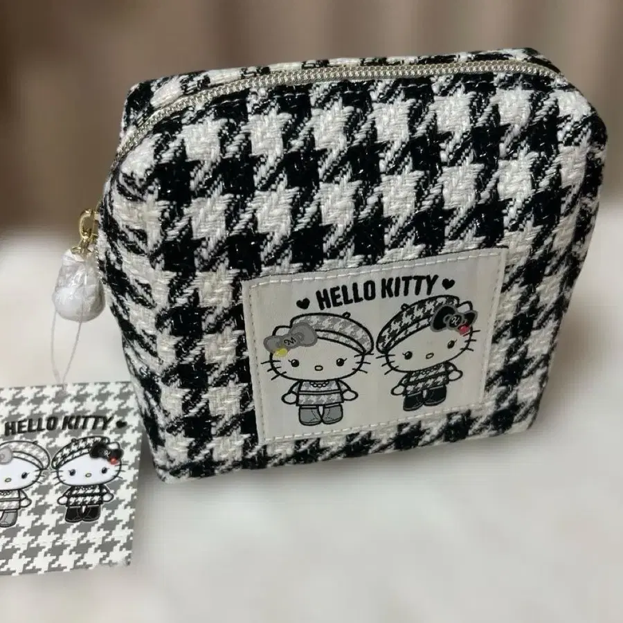 산리오 헬로키티 흑백 걸리시 파우치 하운드투스 체크 패턴