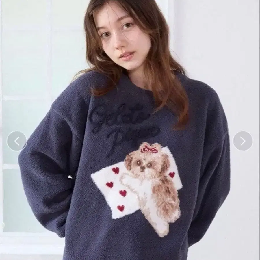 택 포함 새상품 시추 패턴 자카드 원피스 NVY F 룸웨어