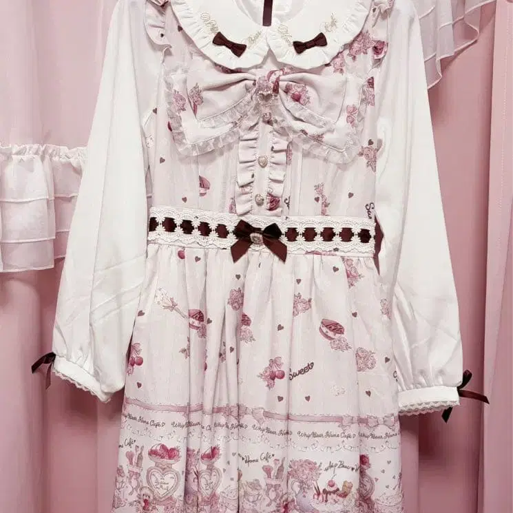 LIZLISA whip bear home cafe 패턴 원피스 화이트