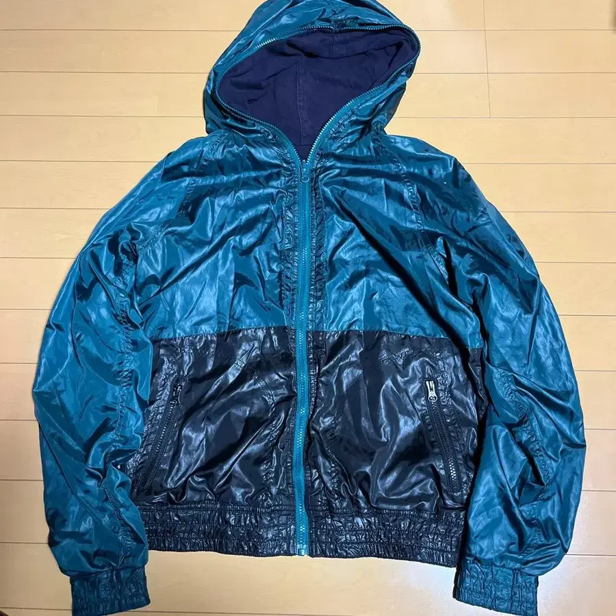 ※ 리버서블로 착용 가능하며, 네이비 후드티로도 사용할 수 있습니다. 원단에 색바램이 보입니다.