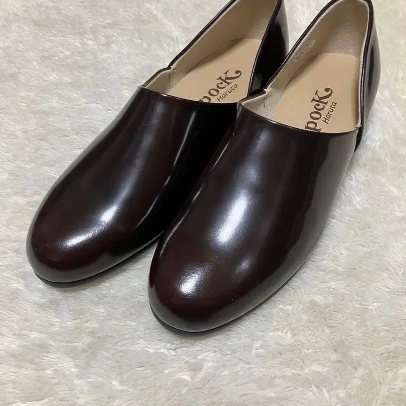 거의 새상품 [하루타] 스포크 슈즈 (24.5) 슬립온 가죽 브라운