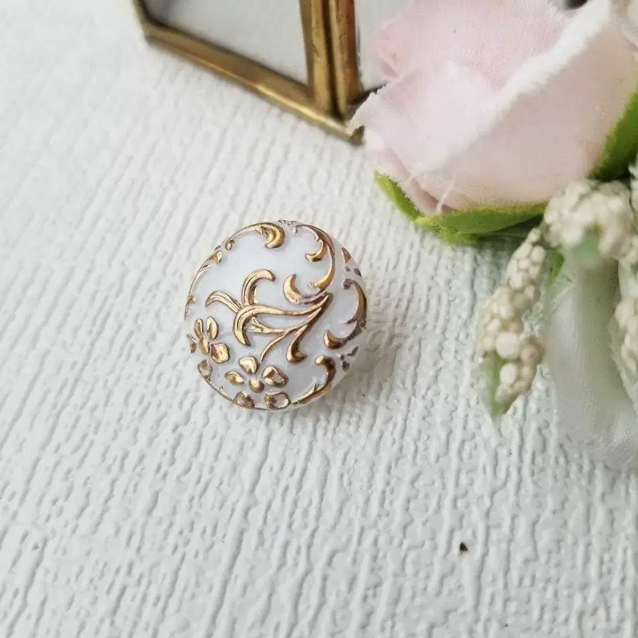 화이트 x 골드 무늬 체코 유리 버튼 목걸이/반지 0801