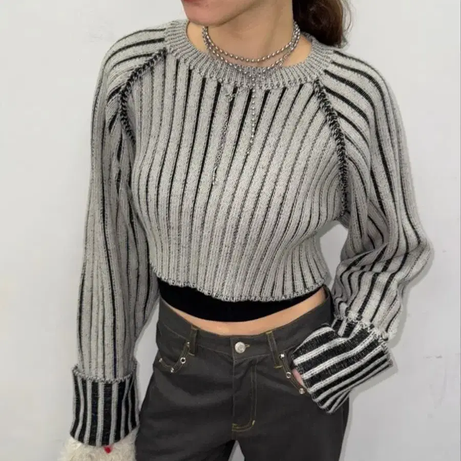 SHAGGIE 플레이팅 크루넥 니트