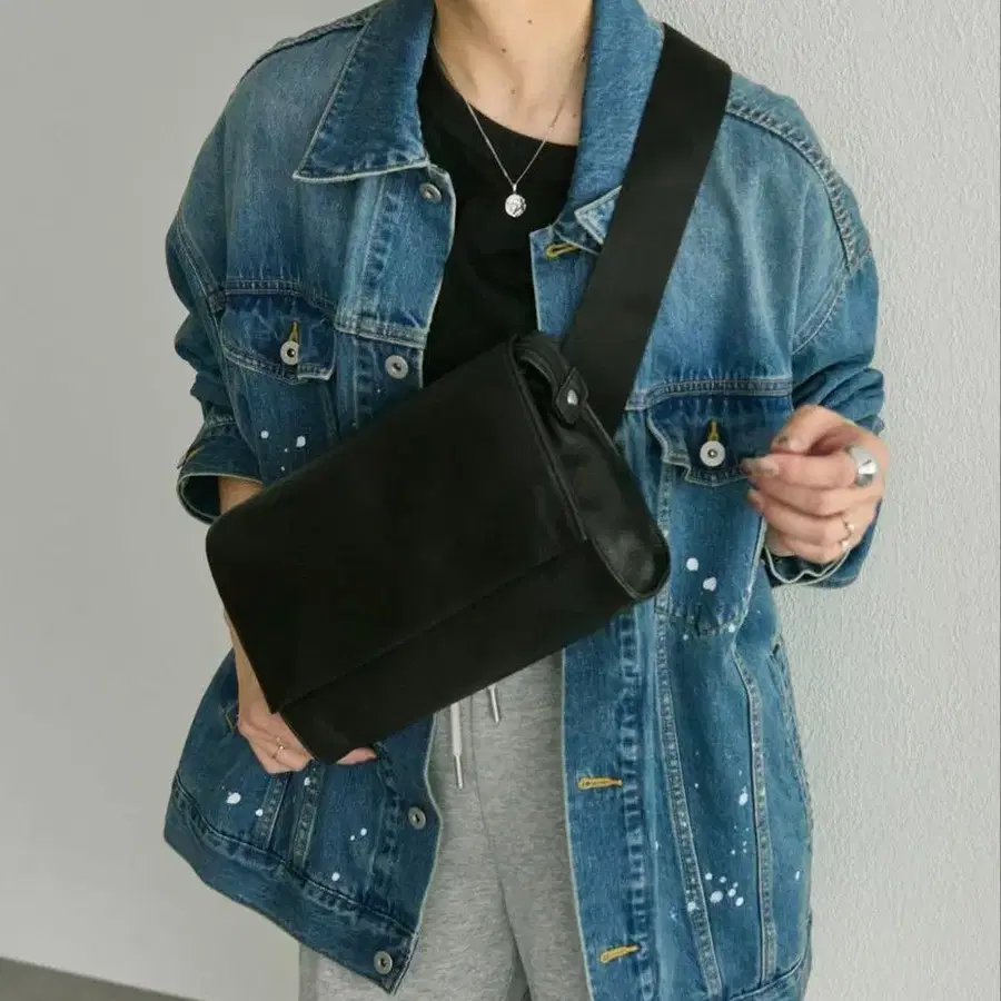 와이드 테이프 숄더백 바디백 숄더백 천연 가죽 이아파피요네