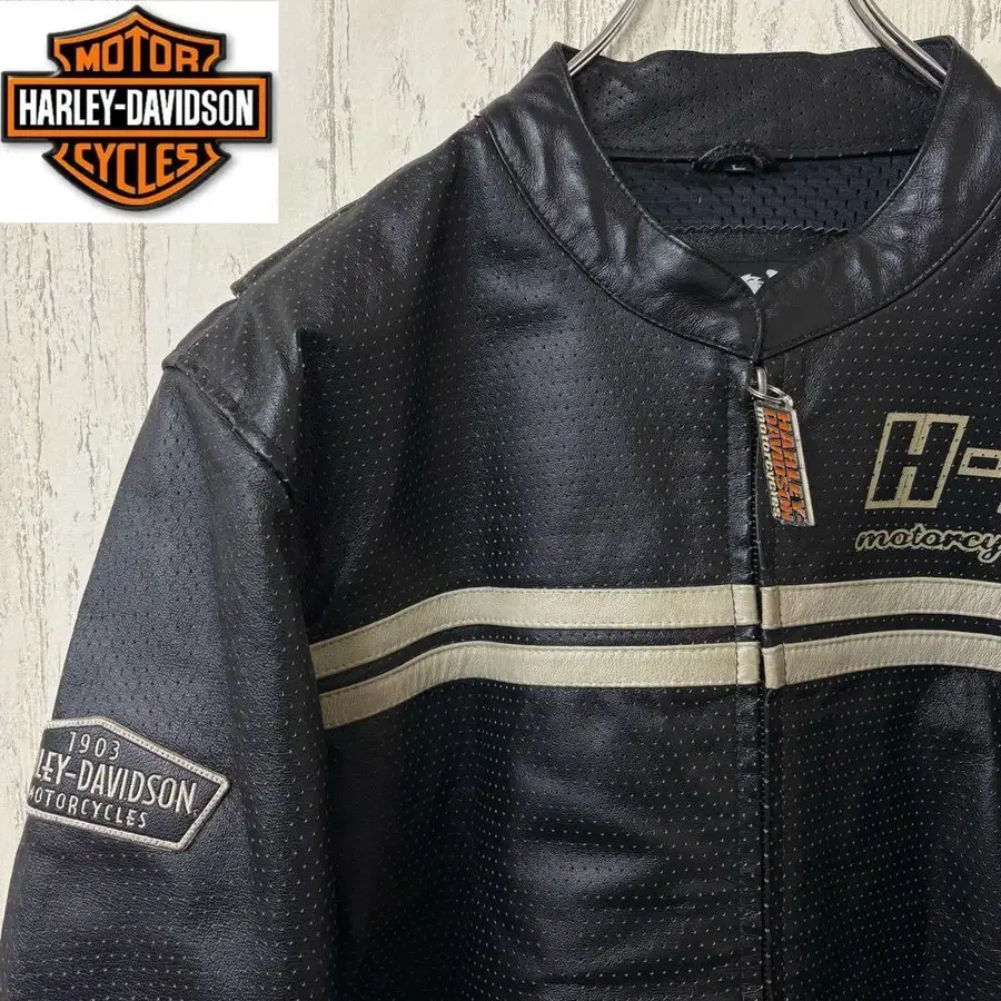 • [ 초레어 ] 할리데이비슨 가죽 자켓 라이더 자켓 자수