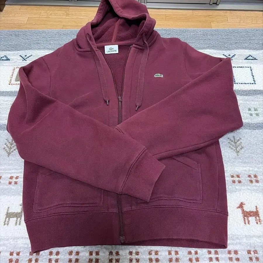 LACOSTE 버건디 지퍼 후드티 사이즈 3