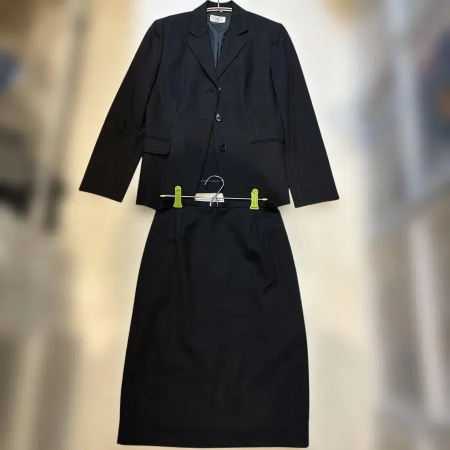 블랙 스커트 수트 무릎 기장
