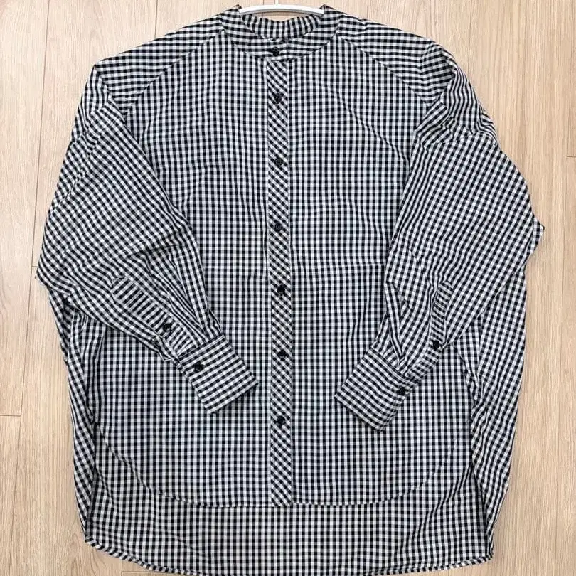 마챗 깅엄 체크 스탠드 카라 오버 셔츠