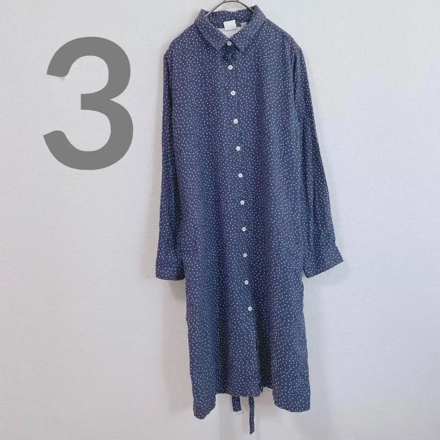 • ichi 물방울 패턴 롱 셔츠 원피스 도트 무늬 셔츠 코튼 혼방