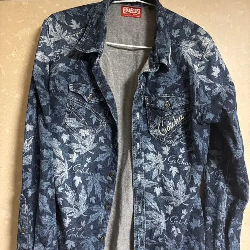 [ 레어 ] GOTCHA 갓차 올 패턴 데님 셔츠 자켓 자수 로고