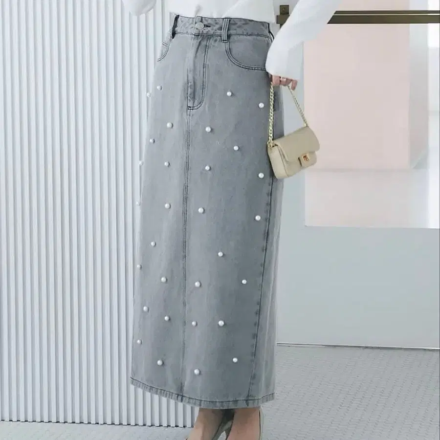 러브티크 붐붐 펄 장식 데님 나이트 맥시 스커트