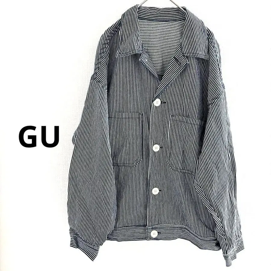 GU 코튼 100 스트라이프 자켓 남성용 M 오버사이즈 남녀 공용