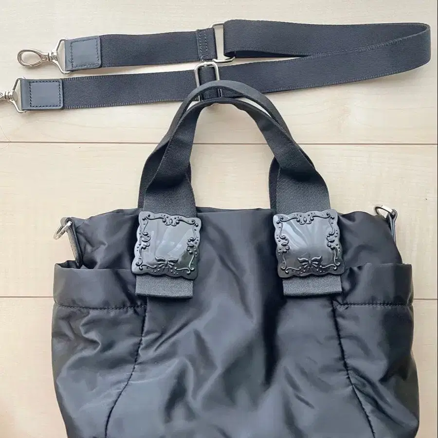 안나수이 블랙 2WAY 백 버터플라이 토트 숄더 블랙 나일론