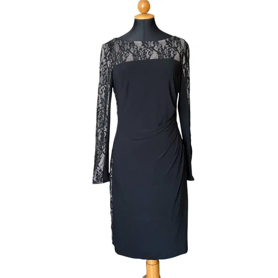 레이스 절개 디자인이 고급스러운 블랙 원피스입니다.
