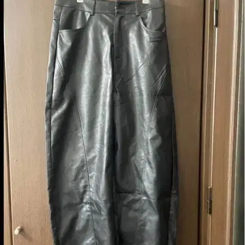 블랙 가죽 와이드 팬츠 남성용