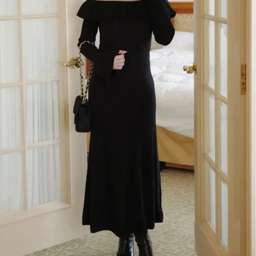 maison de lyla 프릴 타이트 니트 원피스 블랙 스나이델