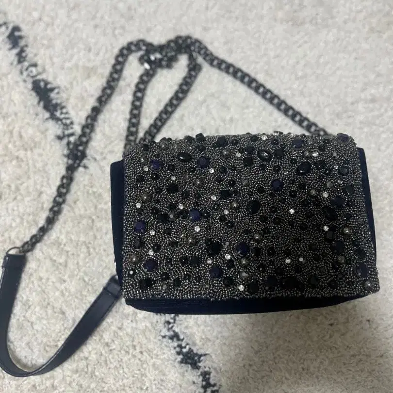 네이비 비즈 장식 클러치백