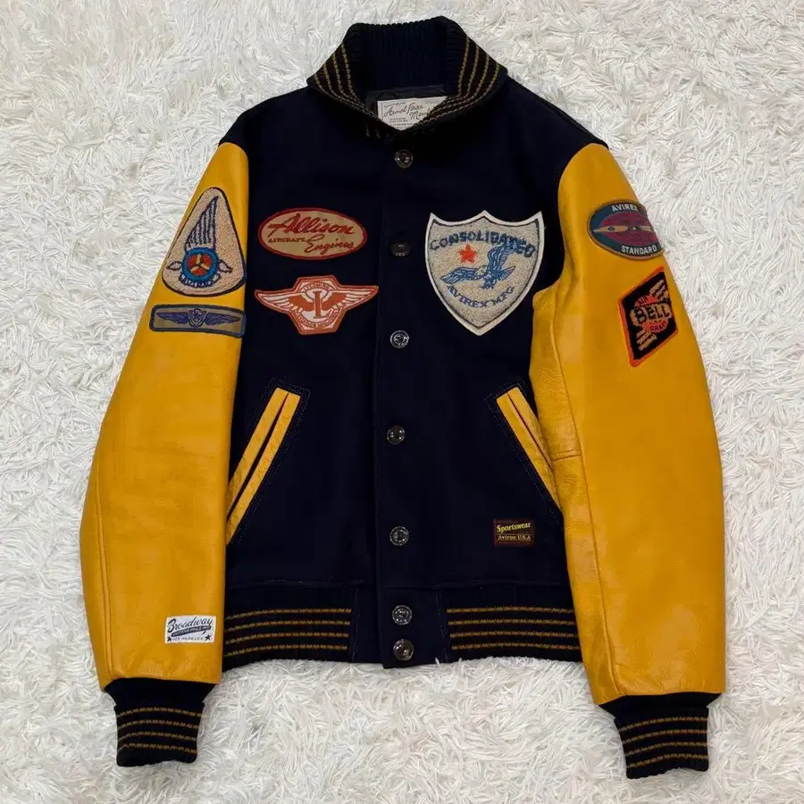 1795 AVIREX 바시티 자켓 소매 가죽 USA제 40 네이비