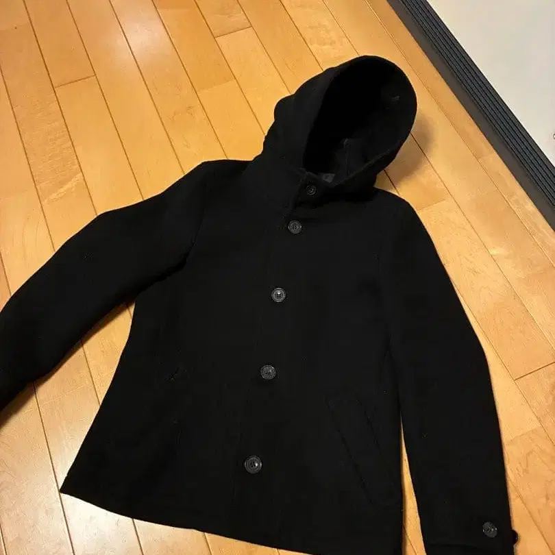 새상품급 HARE 후드 부착 울 코트 블랙 M 사이즈