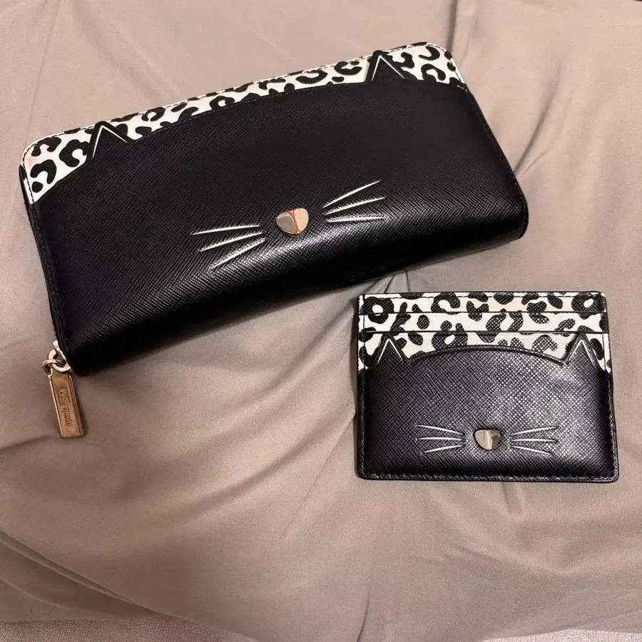 케이트 스페이드 가죽 캣 고양이 라운드 지퍼 장지갑 블랙