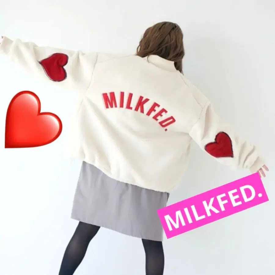 MILKFED. HEART ELBOW PATCH BOA JACKET