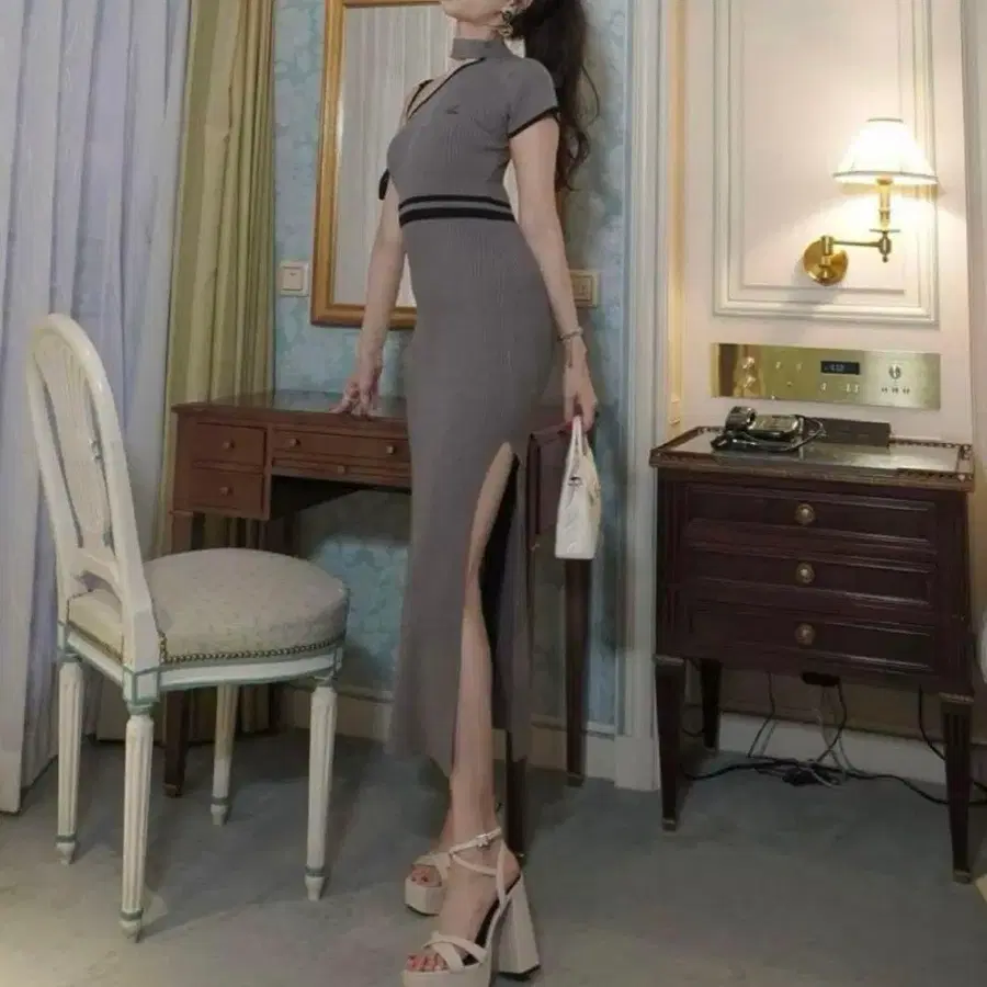 가격 인하 중 amerge 니트 원피스 롱 원피스 그레이