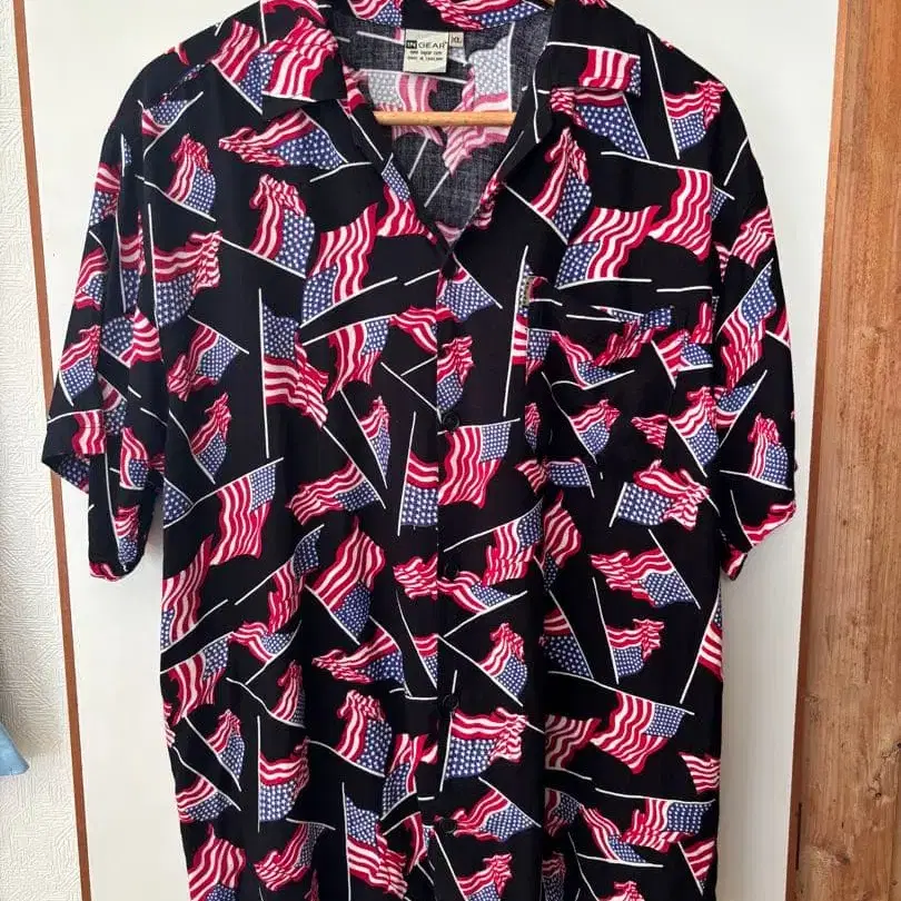 올 패턴 오픈 카라 셔츠 IN GEAR 미국 국기 프린트