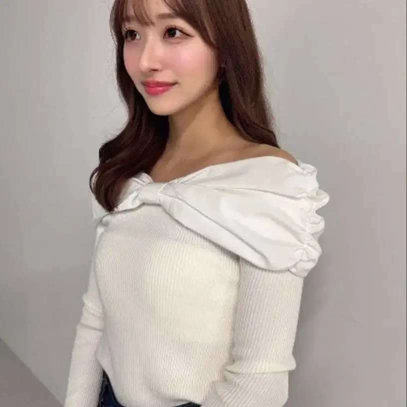Darich 오프숄더 리본 니트탑 화이트