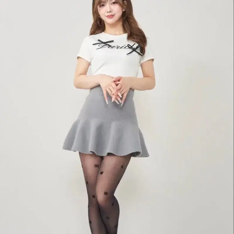 Darich 하이웨스트 니트 미니 스커트 그레이(FL)