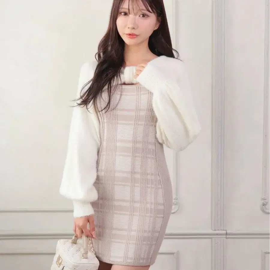 LIP SERVICE 리본 페더 앙상블 니트 원피스 아이보리