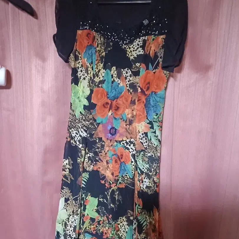 일품 꽃무늬 반팔 원피스 블랙 (검색용) 아메리 레오나르
