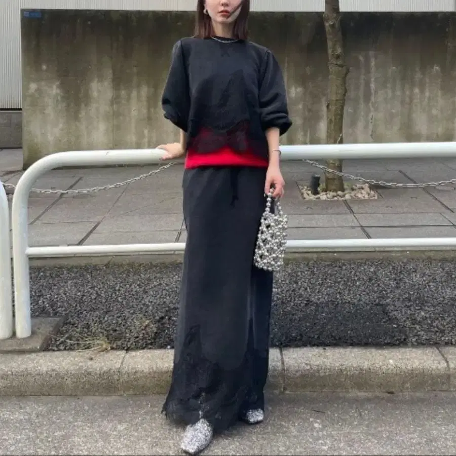 CHEMICAL OVERDYE LACE SWEAT SKIRT 블랙