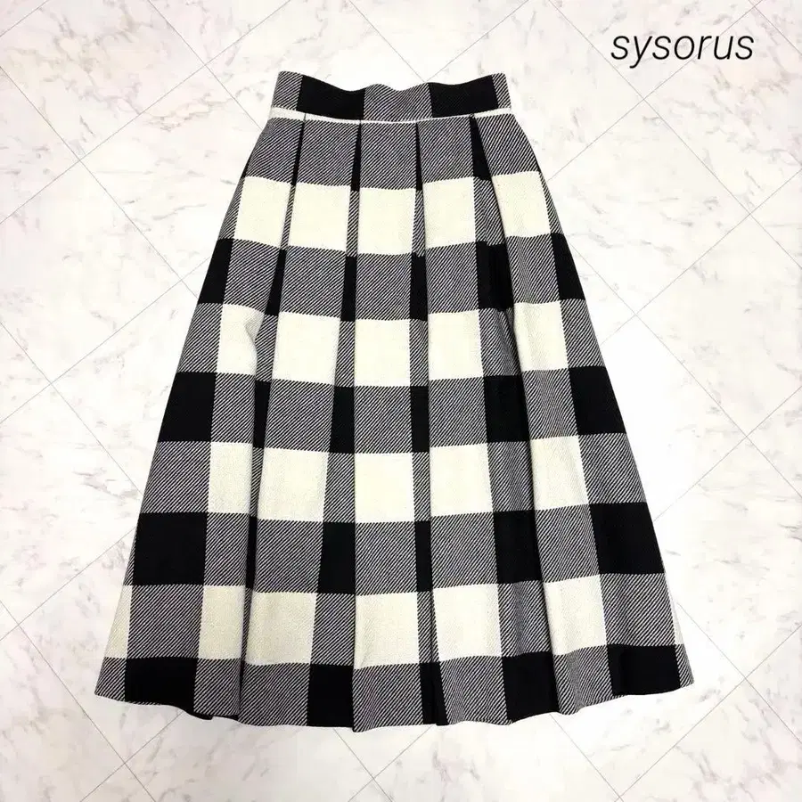 새상품급 sysorus 트위드 체크 턱 플레어 스커트 36