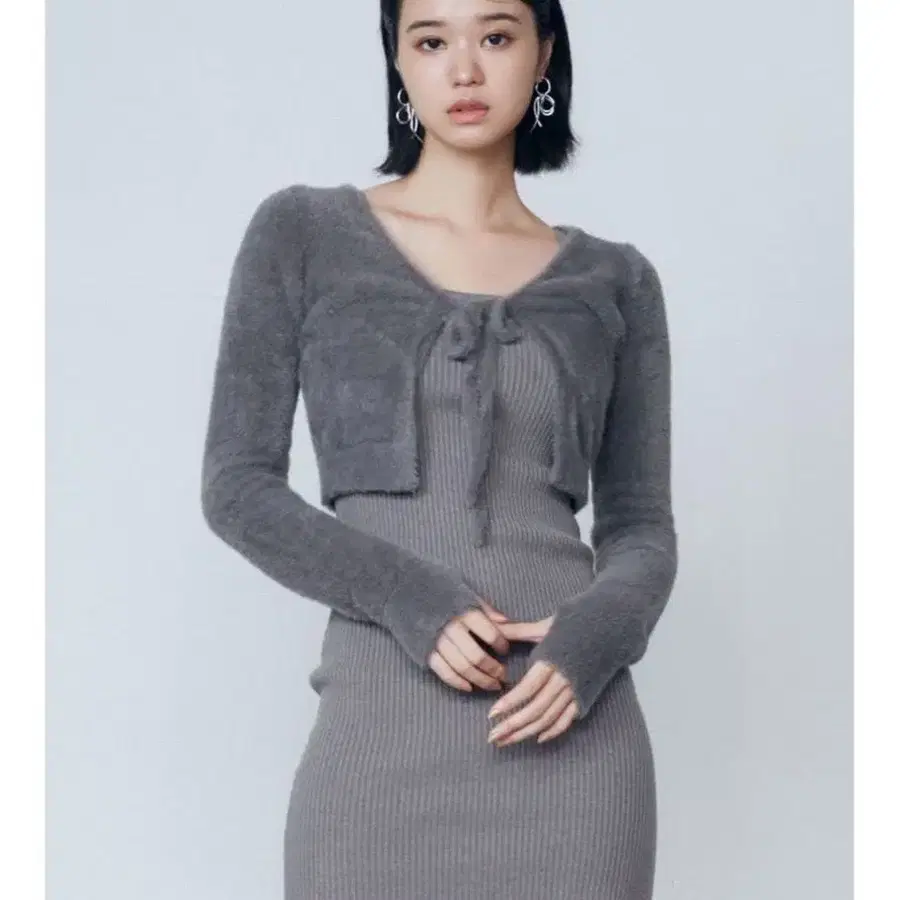 EMODA 샤기 2피스 미니 원피스 그레이