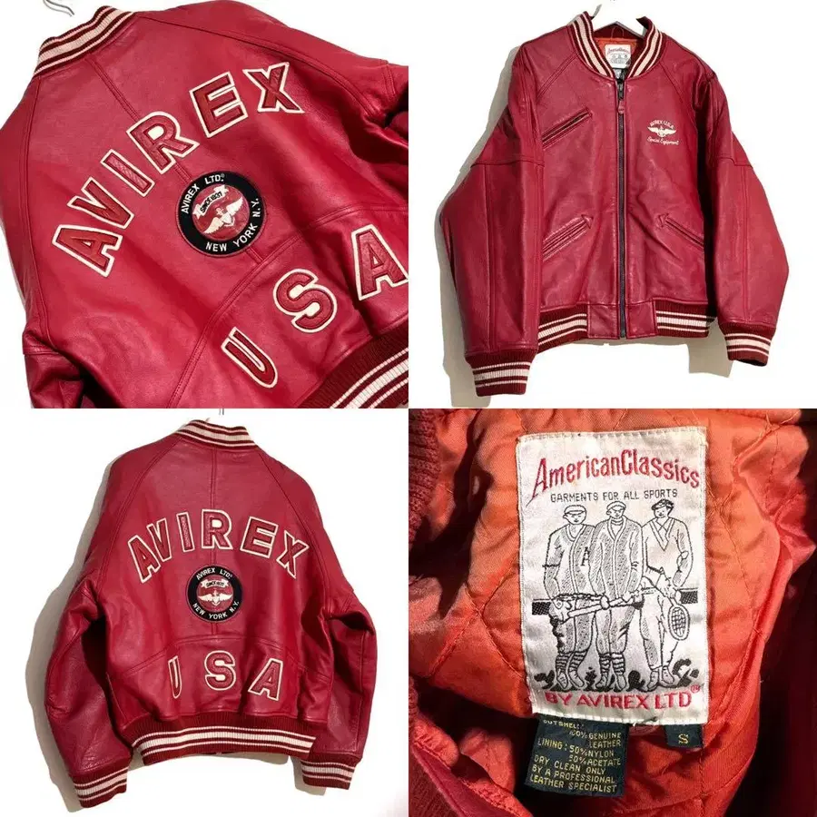 AVIREX 아비렉스 아치 로고 가죽 자켓 빨간색 80s 구제 의류