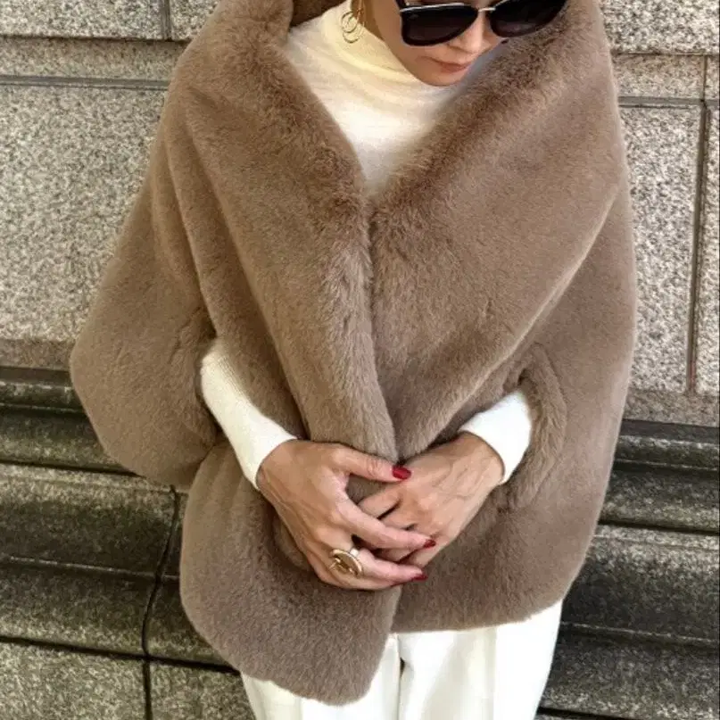 [새상품 미사용] JENNE 리치 볼륨 퍼 케이프 베이지