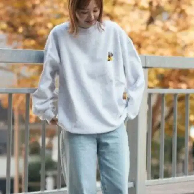 오버 사이즈 자수 속기모 맨투맨 'FLOWER MOJYA'