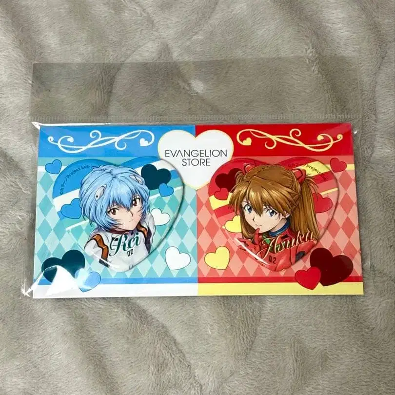 신세기 에반게리온 14주년 기념 페어 하트형 캔뱃지 아스카 아야나미 레이