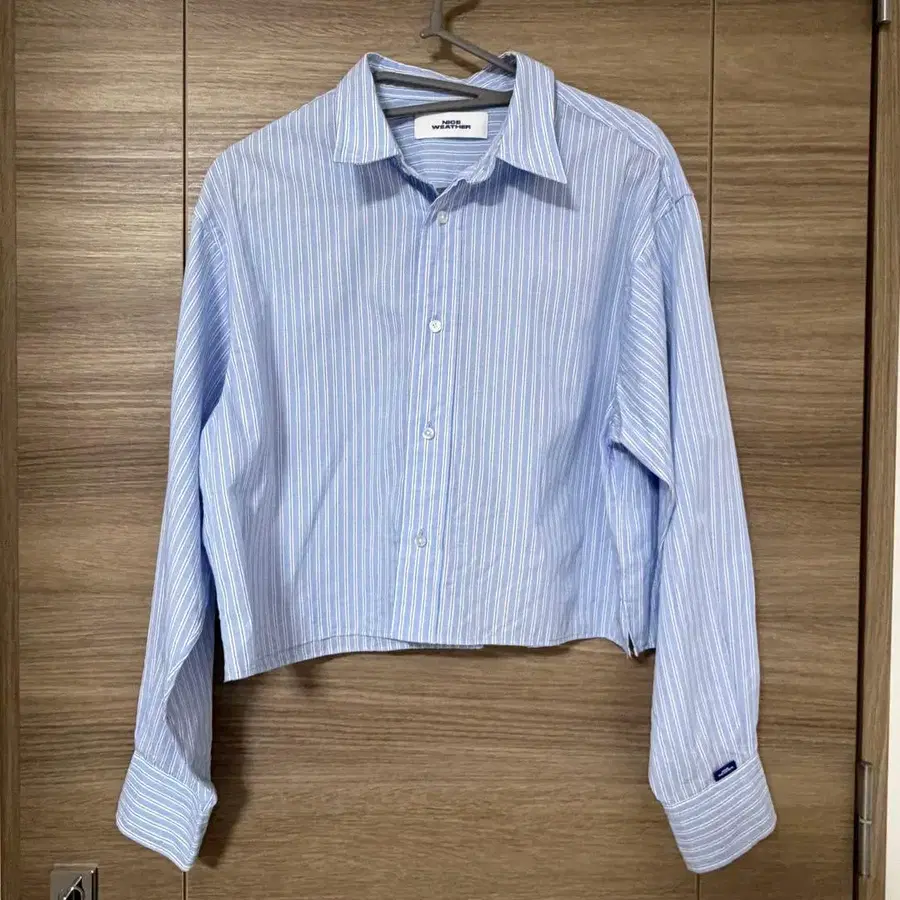 스트라이프 패턴의 레귤러 카라 셔츠를 숏 기장으로 어레인지한 트렌디한 아이템.