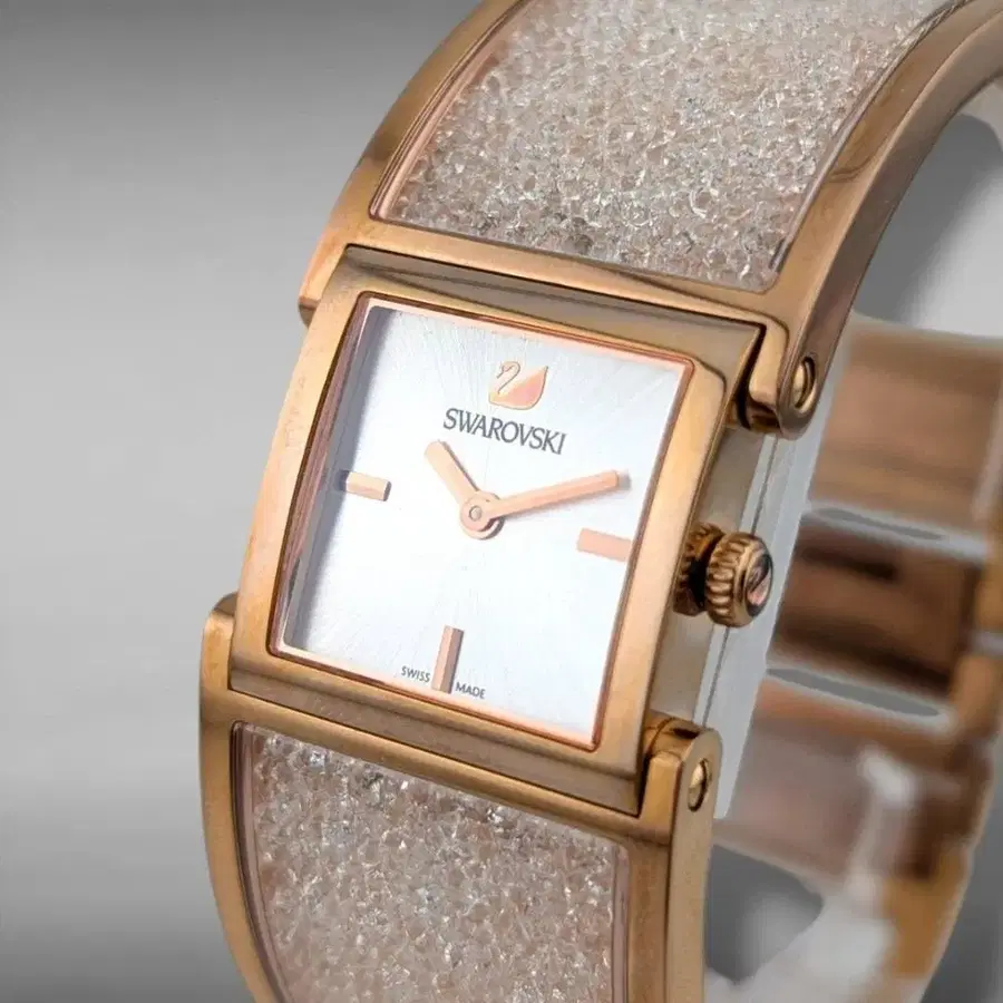 [ 새상품 배터리 작동 ] 스와로브스키 크리스탈 라인 뱅글 워치 손목시계