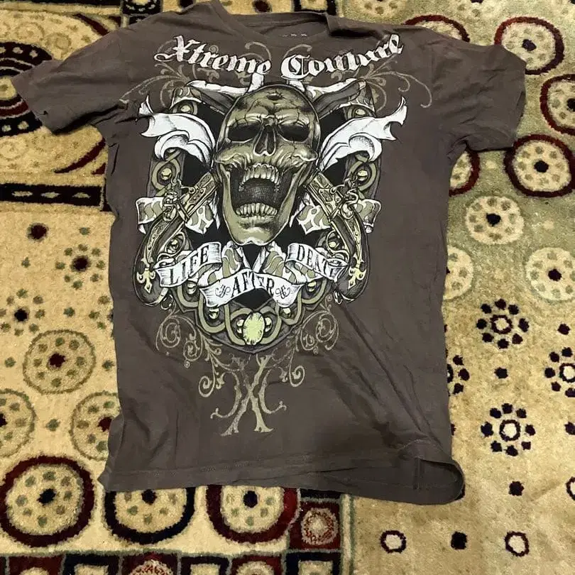 Xtreme Couture 스컬 T셔츠 브라운 y2k 시크 스타일 fuc