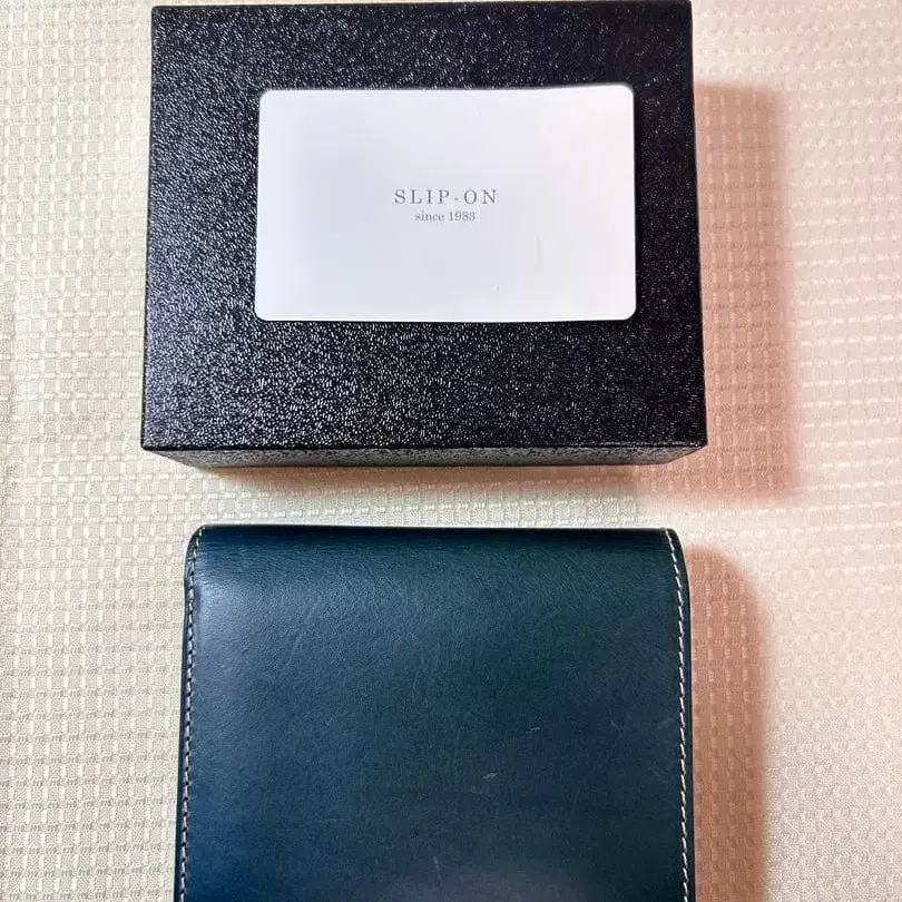 SLIP-ON 다크 블루 접이식 지갑 이탈리아 가죽