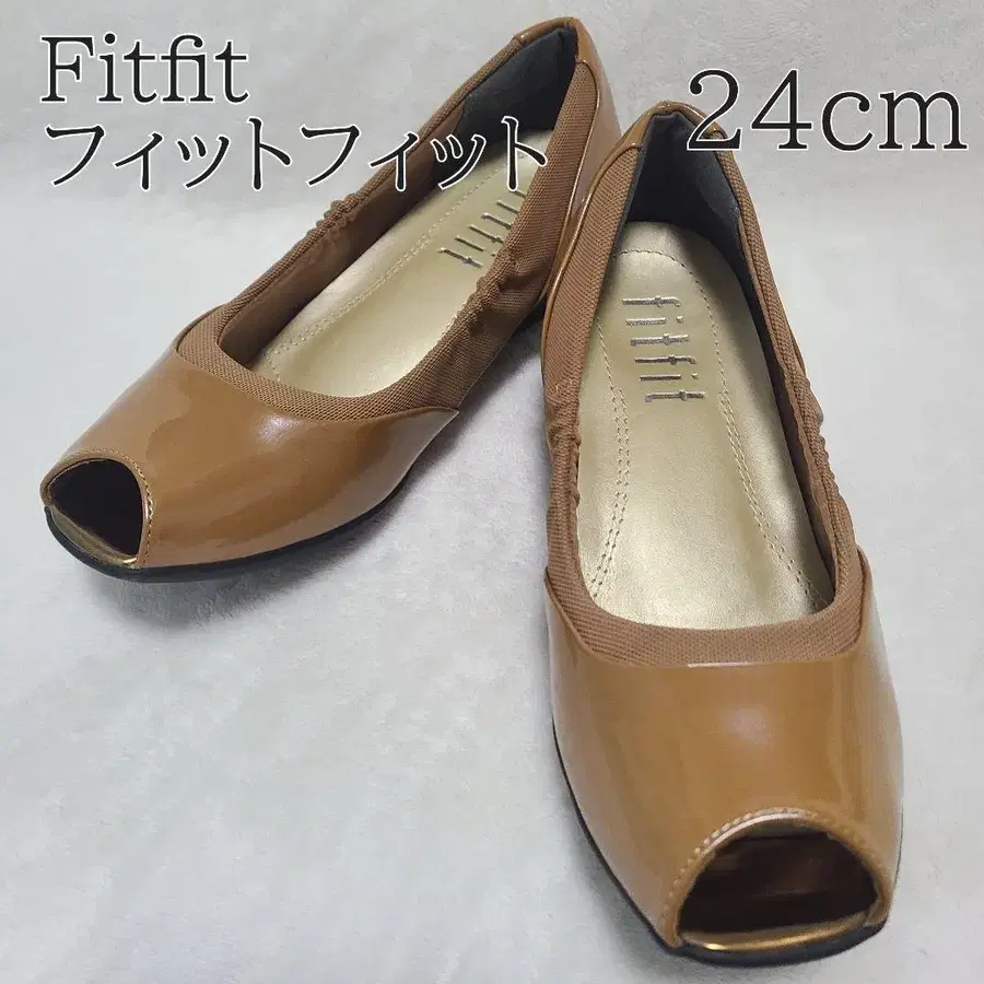 Fitfit/핏핏의 에나멜 오픈토, 카멜/브라운, 컴포트 샌들, 24cm입니다.