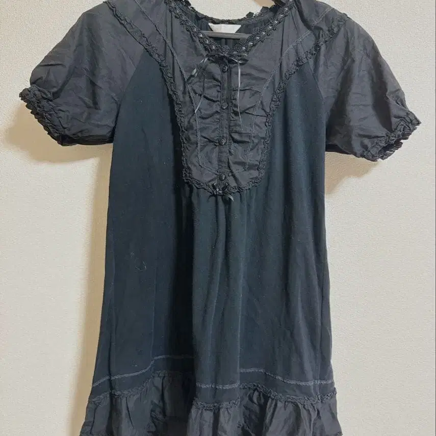 새상품급 핑크하우스 블랙 프릴 튜닉 반팔